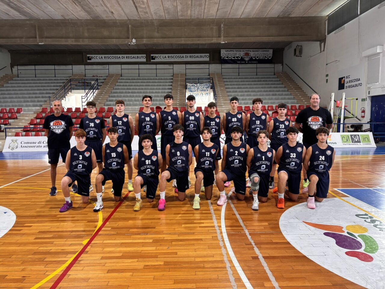 In Piedi da Sinistra: Alfio Occhipinti (COACH), Simone Mandarà, Biagio Velaj, Gabriele Ravalli, Giovanni Nicosia, Flavio Giarrizzo, Aurelio Minardo, Salvo Tinè, Gabriele D’Ascenzo, Niccolò Incremona, Davide Ceccato (Coach).